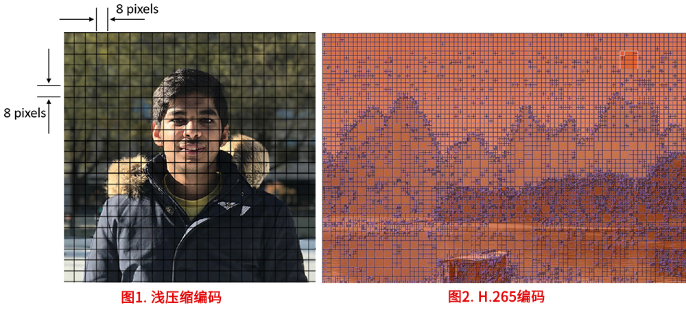 “淺壓縮”幀內無差別編碼,而H.265幀內差異化編碼。